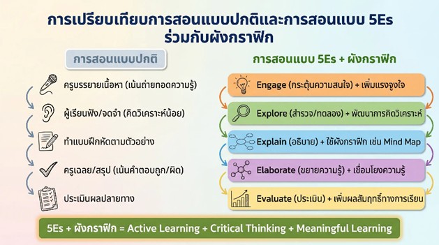 การจัดการเรียนรู้แบบสืบเสาะหาความรู้ (5Es), เทคนิคการใช้ผังกราฟิก, ผลสัมฤทธิ์ทางการเรียน, ทักษะการคิดวิเคราะห์, ความพึงพอใจบทคัดย่อ