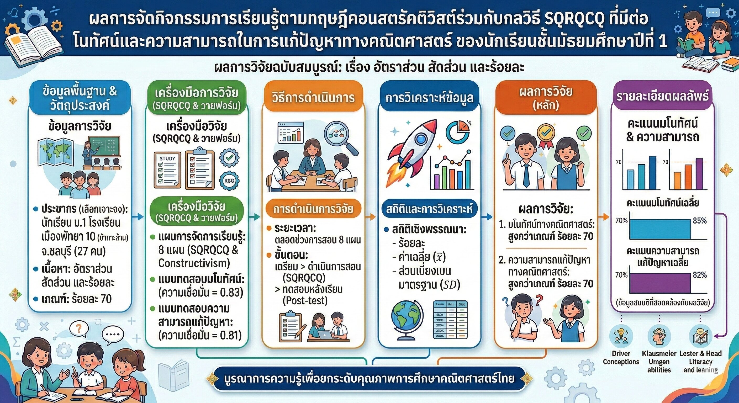 ผลการจัดกิจกรรมการเรียนรู้ตามทฤษฎีคอนสตรัคติวิส์ร่วมกับกลวิธี SQRQCQ ที่มีต่อมโนทัศน์และความสามารถในการแก้ปัญหาทางคณิตศาสตร์ ของนักเรียนชั้นมัธยมศึกษาปีที่ 1
