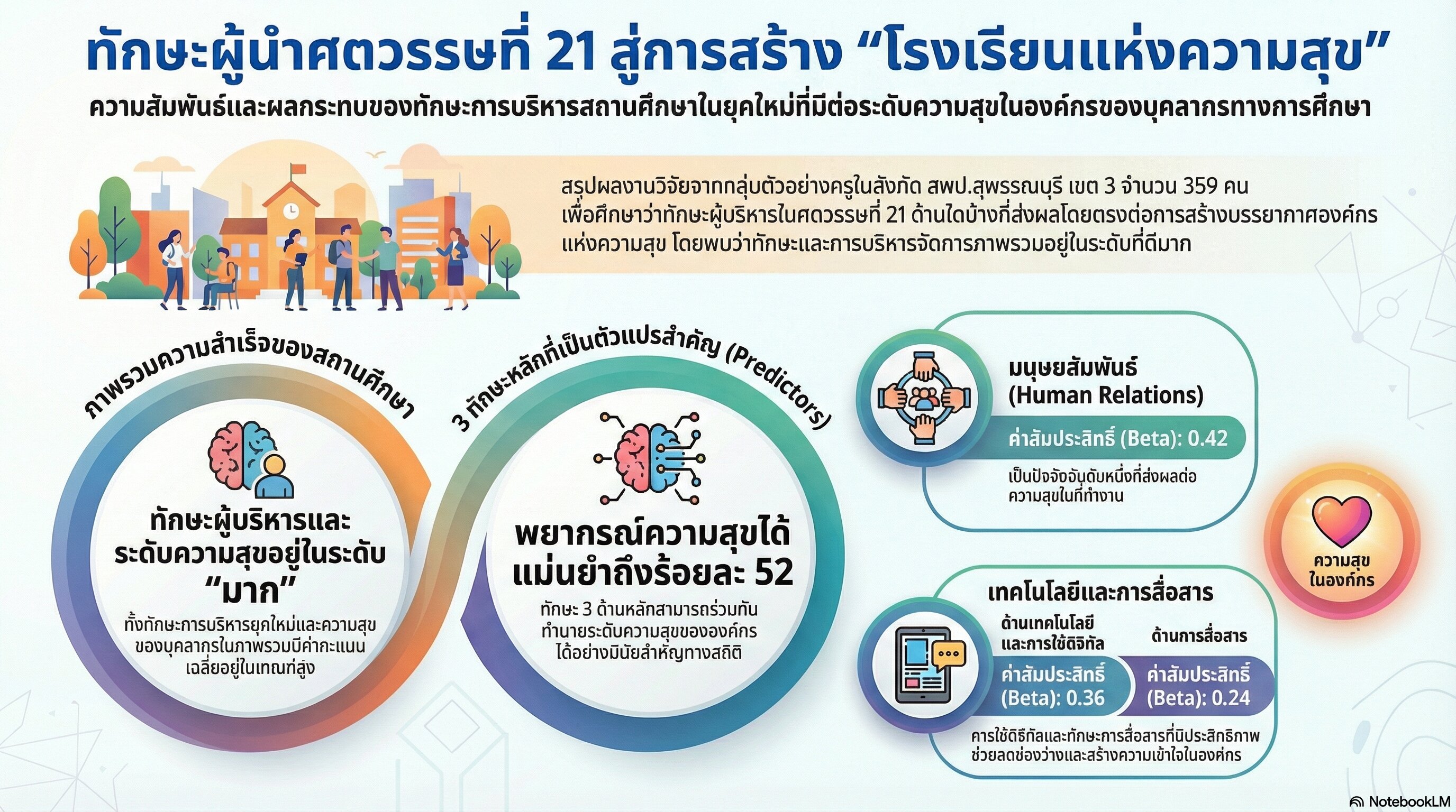 ทักษะของผู้บริหารสถานศึกษาในศตวรรษที่ 21 ที่ส่งผลต่อความเป็นองค์กรแห่งความสุข สังกัดสนักงานเขตพื้นที่การศึกษาประถมศึกษาสุพรรณบุรี เขต 3