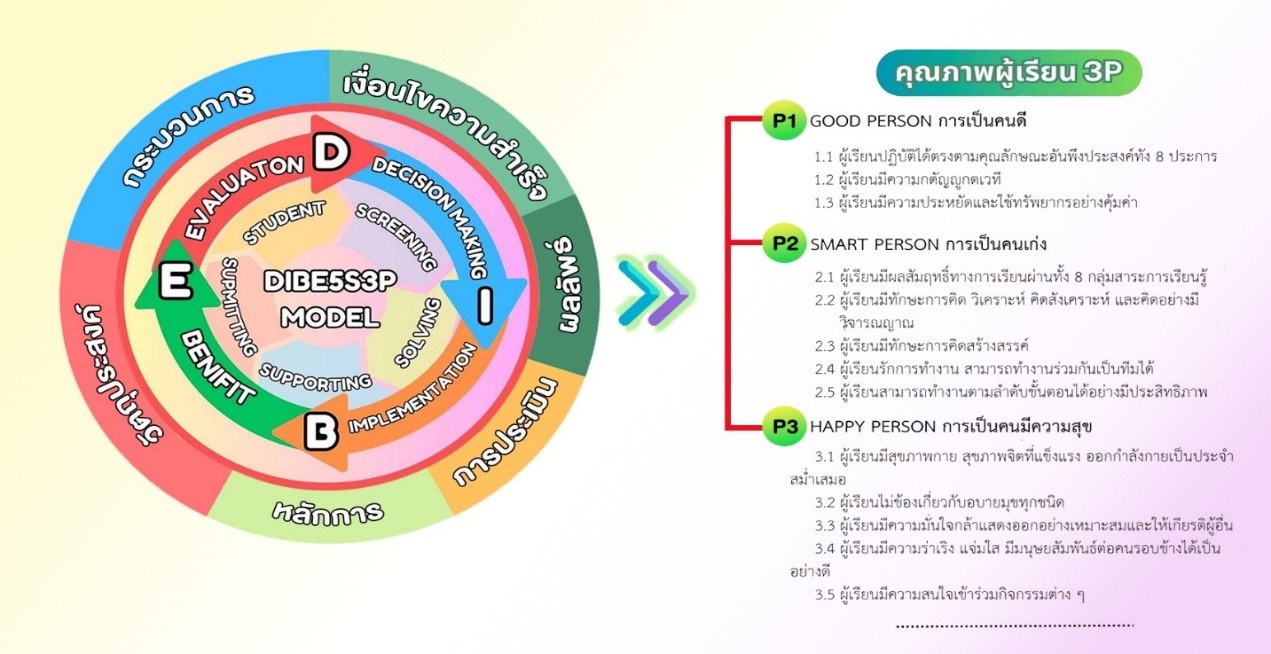 2. The DIBE5S3P Model comprised six components: principles, objectives, processes, success conditions, outcomes, and evaluation, with the index of item-objective congruence (IOC) ranging from 0.80 to 1.00.