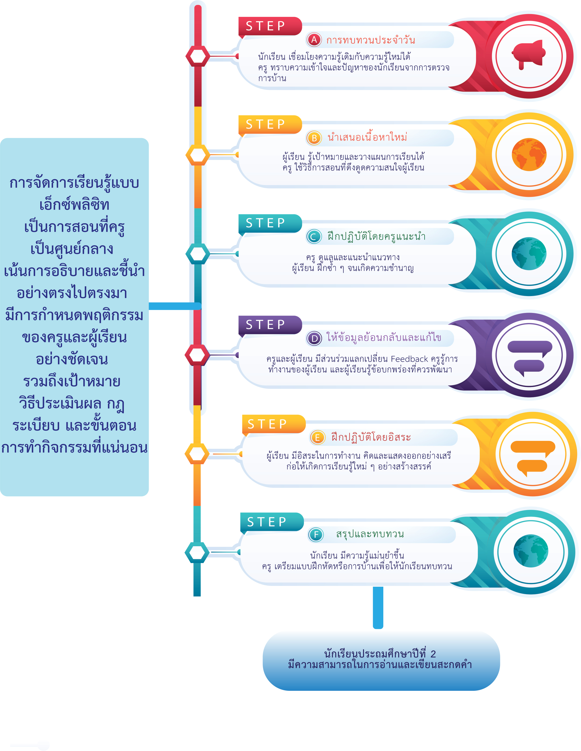 วัชรี ไชยบุตร. (2558). การจัดการเรียนรู้แบบเอ็กซ์พลิซิทเพื่อพัฒนาผลสัมฤทธิ์การอ่านสะกดคำของนักเรียนชั้นประถมศึกษาปีที่ 2 โรงเรียนบ้านโม่งหลวง อำเภอแม่แจ่ม จังหวัดเชียงใหม่. (วิทยานิพนธ์ครุศาสตรมหาบัณฑิต). เชียงใหม่: มหาวิทยาลัย ราชภัฏเชียงใหม่.